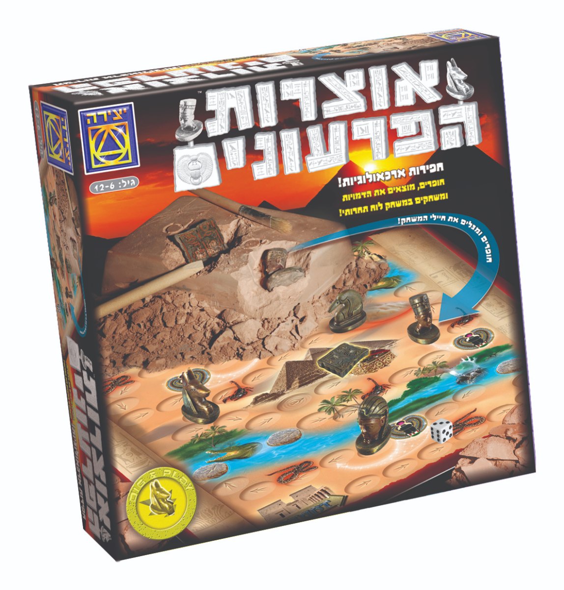 אוצרות הפרעונים- חפירות ארכיאולוגיות” משחק קופסה תחרותי ומרתק בו זוכים באוצר הקבור בפירמידות. זורקים קוביה, מוצאים את הדמויות המוחבאות ומגיעים אל האוצר.